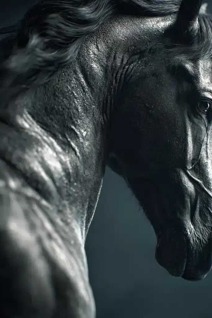 “En enorm, sort, muskuløs hingst på 800 kilo. Kan du se den for dig? Kan du se, hvordan musklerne sitrer under pelsen? Kan du mærke varmen, der stråler fra den?”